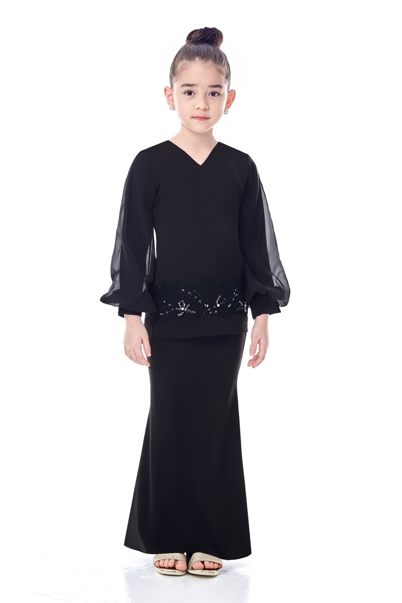 Jannahnoe Kurung Modern Wear Scarves Baju Kurung Brides Series Casual Baju Melayu Kurta New In Arielle Kurung Kids In Selena Black